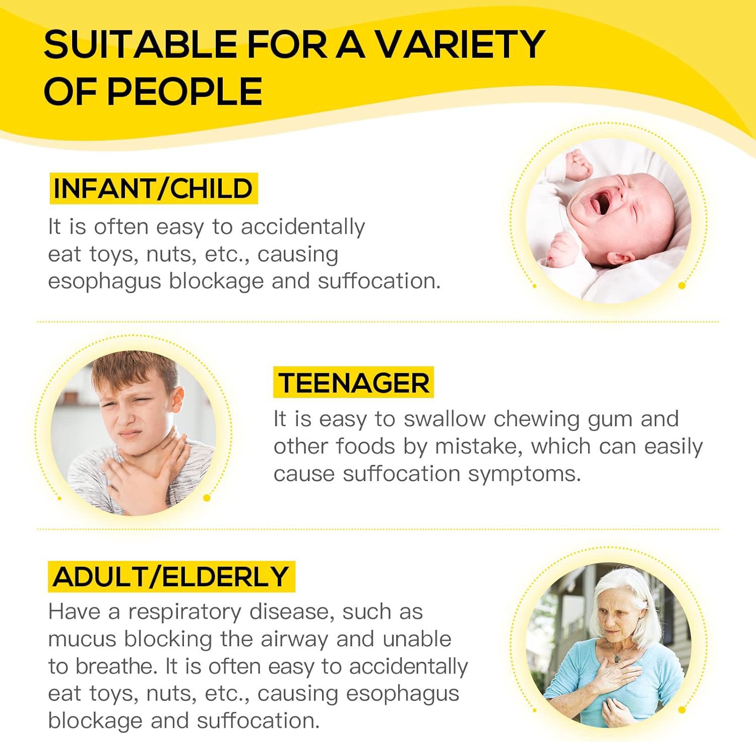 Effective suction power (as shown in product use image) – Designed to rapidly extract foreign objects from the airway, potentially saving lives within seconds.